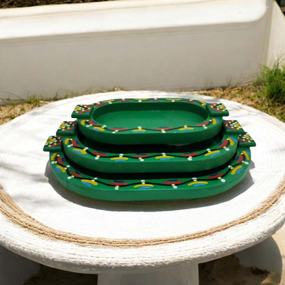 أضف لمسة تراثية مميزة إلى ضيافتك مع هذه الطوفَرية الخشبية المزخرفة بحرفية عالية. بتصميمها المستوحى من الزخارف الشعبية وألوانها الزاهية، تُعد مثالية لتقديم القهوة، الحلويات أو حتى للعرض كقطعة ديكور.
